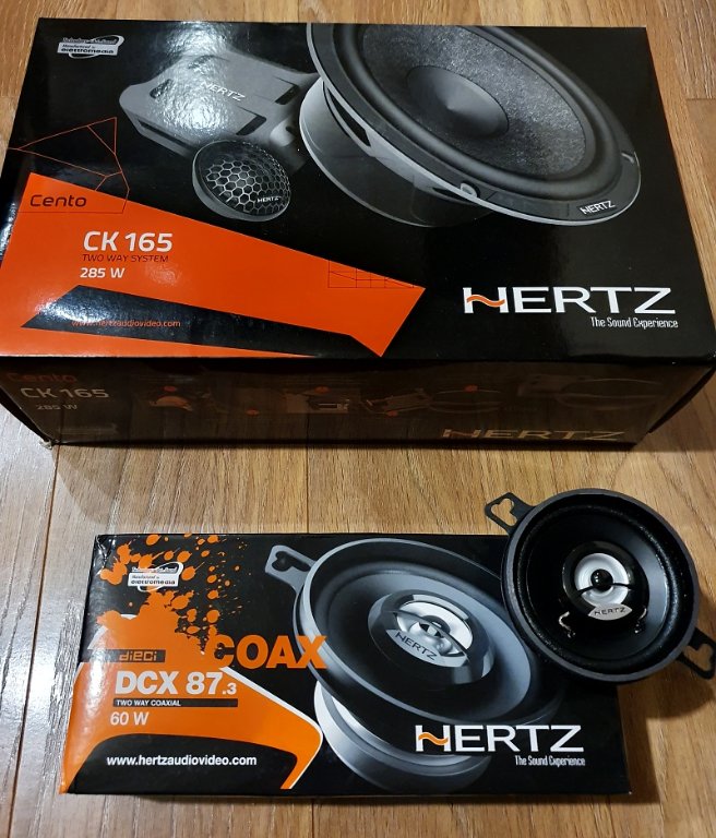 Začal mi chrčať pravý predný reproduktor v dverách, tak som sa rozhodol pre upgrade za meniče Hertz. Centrálny reprák v palubnej doske som dal Hertz DCX 87.3 a keďže sa kupujú ako pár, tak samozrejme sa mi jeden kus zvýšil. Ak by mal niekto záujem dorobiť si center, či vymeniť za originálny, SZ.