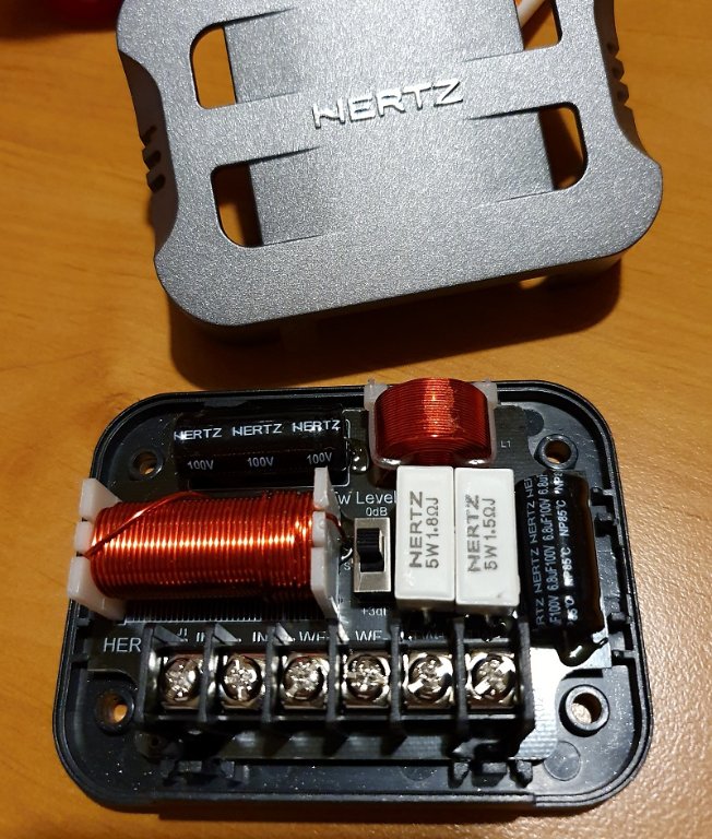 Doufám, že v originálním zapojení není jen kondík, který má "rádoby" strmost 6dB/oktávu. U Hertzů píšou "plnohodnotné výhybky s dělící frekvencí 2500 Hz a strmostí 12dB/oktávu", ale stejně by mě zajímalo foto vnitřku (náhodou nemáš).