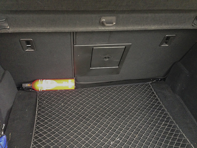 Vyčalounil jsem pravou přihrádku v kufru a dal jsem tam hasicí přístroj + žárovky atd.