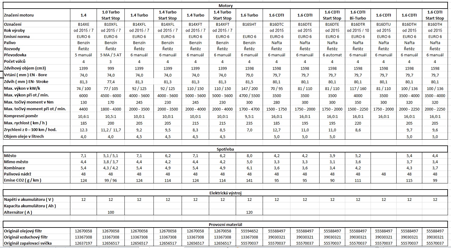 Jak bude čas zakompunuji do tabulky a případně zde vložím ;) ;) ;) , jen tam není žádné info k motorům 1.6 CDTI :? :? :? .