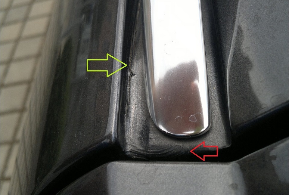 Mam to taky tam - zelena sipka. Zajimalo by mne, jestli to tam uz nekdo opravoval, nebo to je vyrobni tmel - cervena sipka.