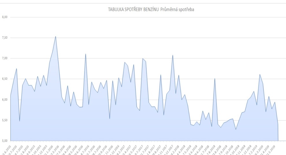 Celková průměrná spotřeba se pohybuje momentálně na hranici 6,05 litru / 100 km.